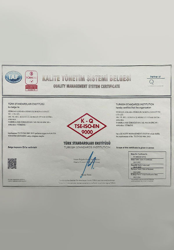 • Kalite Belgelerimiz